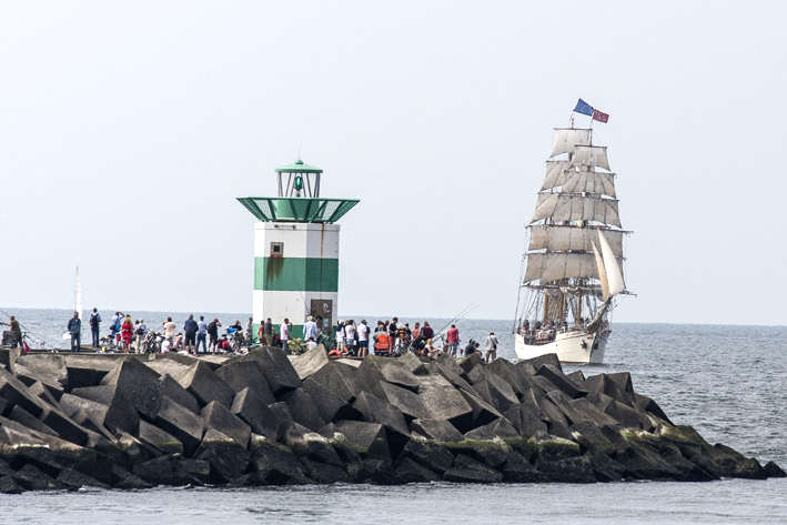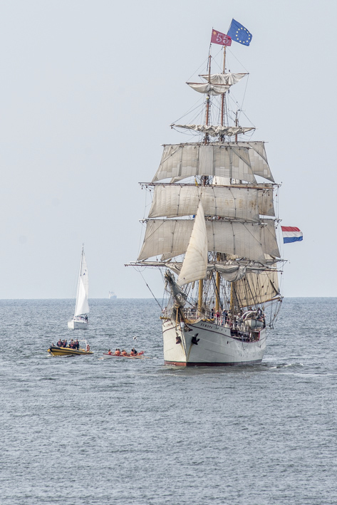 Het tallship ‘Europa’ vaart haar thuishaven Scheveningen binnen.